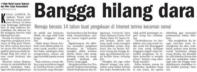 Bila dah masuk paper macam ni, satu Malaya akan tahu. Inikah populariti yang dicarinya?! Mak bapak dia jugak yang akan menanggung malu. Budak-budak zaman sekarang ni, bahaya sungguh!